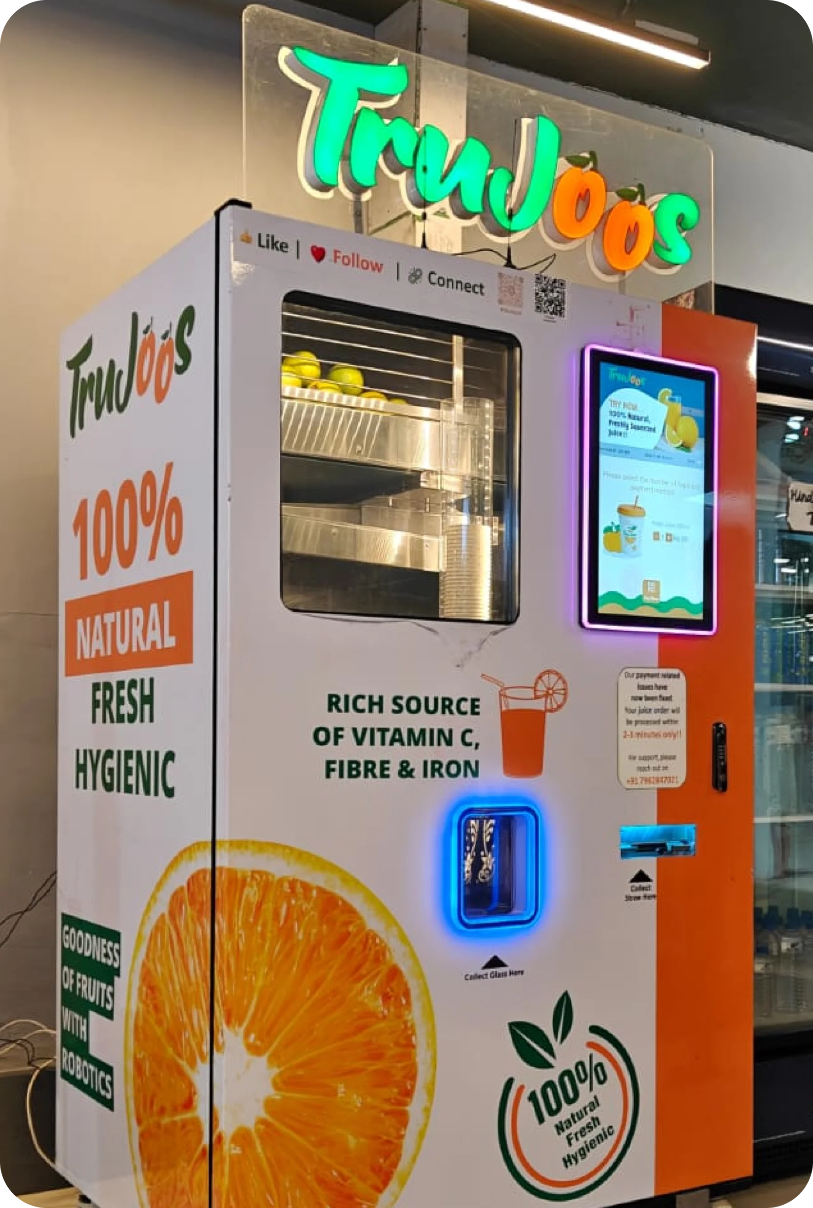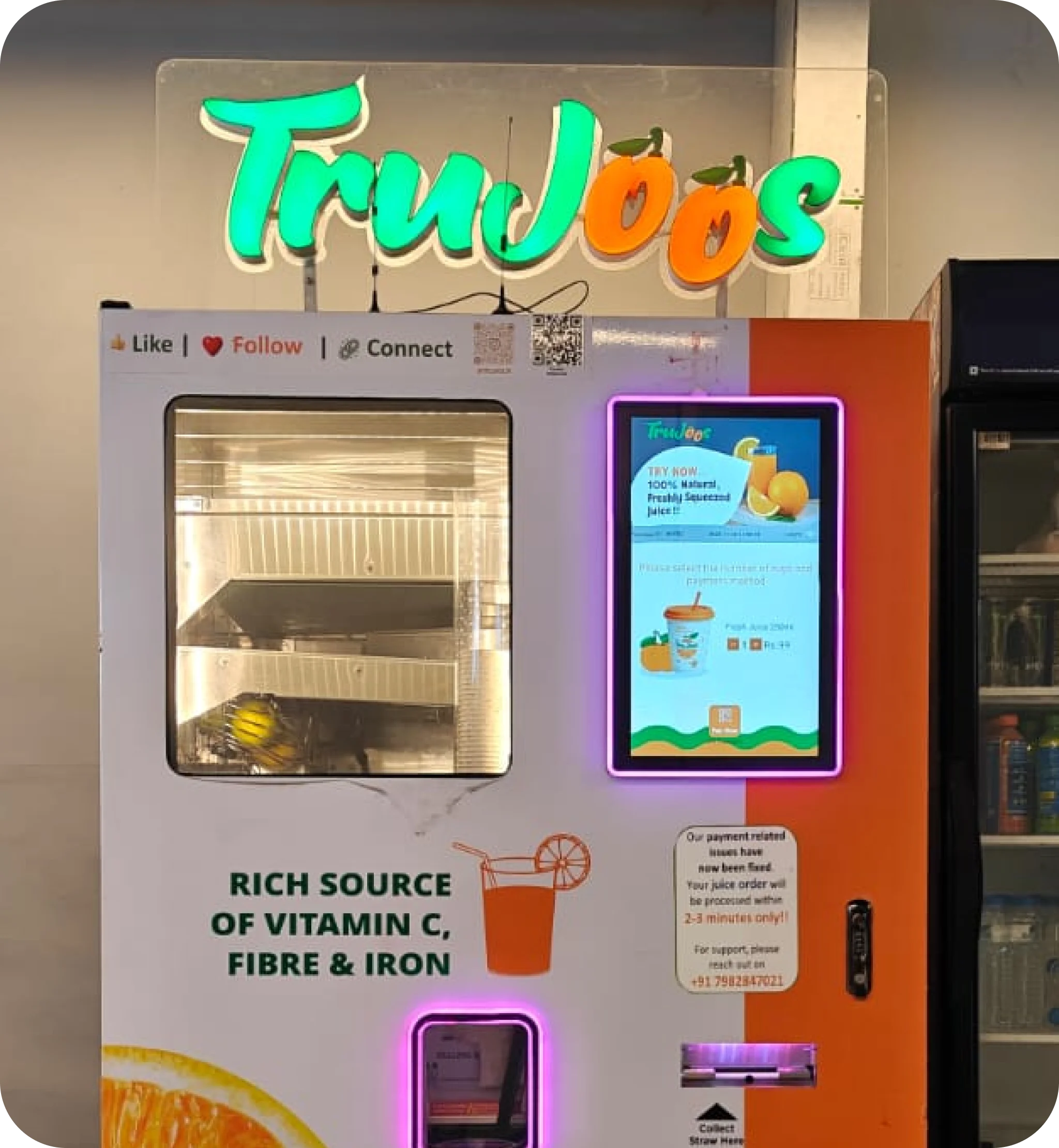 With a vision to enable consumers to lead a healthy lifestyle and to create a fresh & healthy ecosystem, TruJoos has launched the most advanced smart juice vending machines in India!